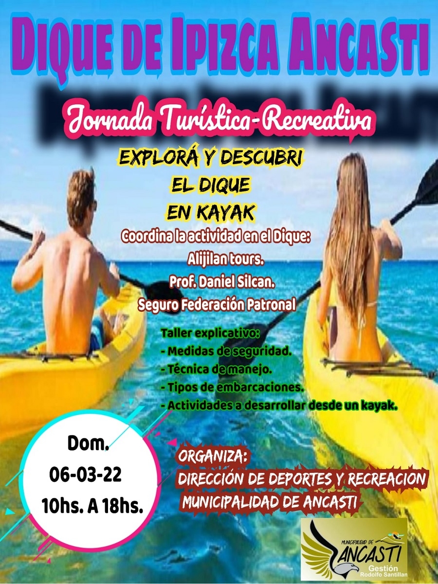 Programada entre las 10 y las 18 hs., por “Alijilán Tour” del Prof. Daniel Silcán, la actividad incluye paseos en kayak, que comenzarán un Taller Explicativo sobre Medidas de Seguridad, Técnicas de Manejo, Tipos de embarcaciones; para concluir con las prácticas a desarrollar desde las mismas embarcaciones.