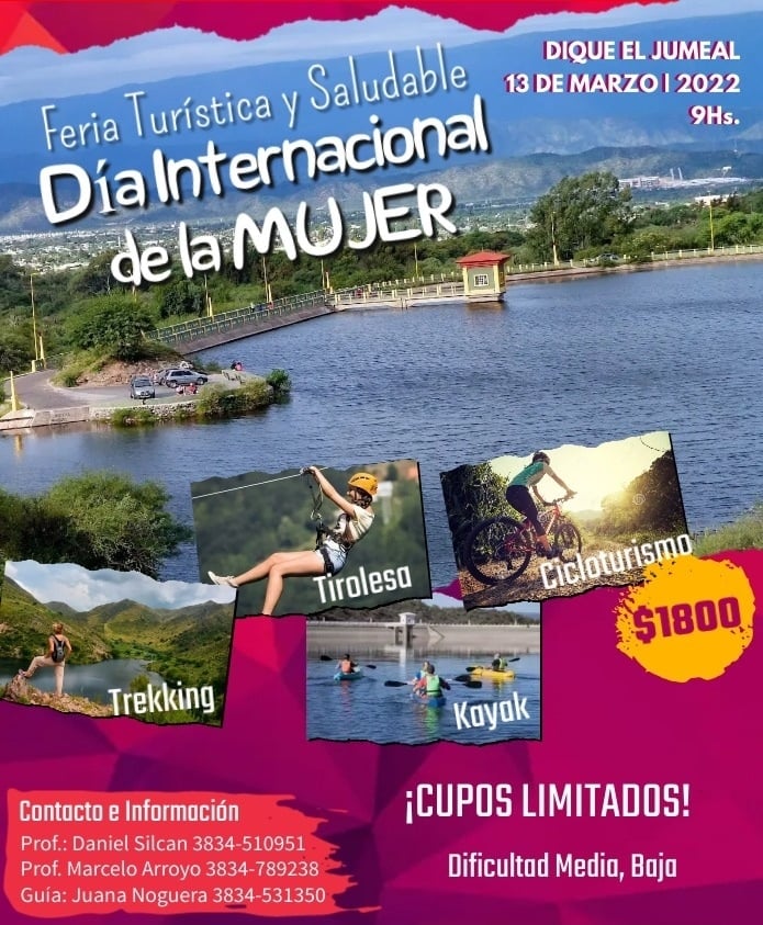 Con cupos limitados, guiadas por especialistas en las distintas disciplinas, la iniciativa alcanza a las prácticas de Cicloturismo, Tirolesa, Trekking y Kayak, con estimación de “media a baja dificultad”, a cumplirse a parir de las 9 de la mañana, con punto de concentración en el playón del dique.