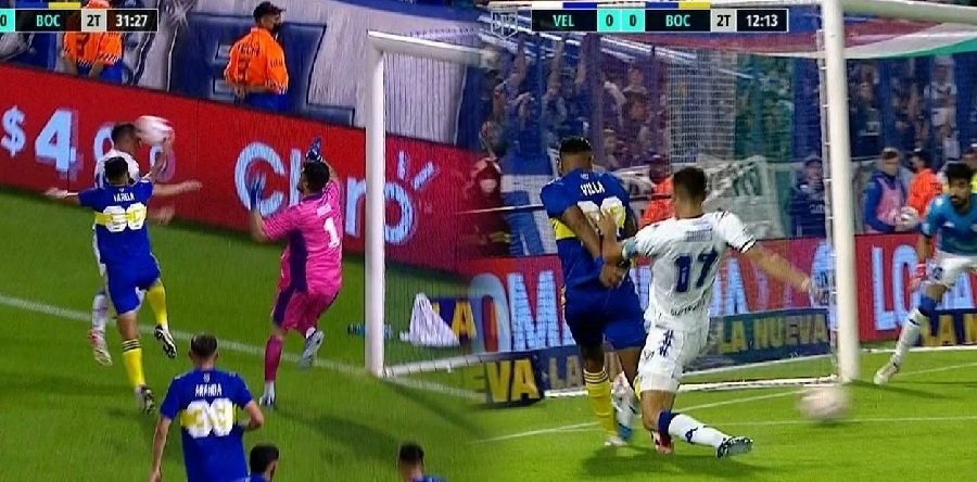 Villa recibió de Romero, lo encaró a Gianetti, se metió al área y se bien logró tirar el centro atrás (la jugada terminaba en nada) el defensor de Vélez bajó su pie derecho sobre el tobillo izquierdo del delantero de Boca, que quedó detrás de la línea de fondo, directamente afuera de la cancha, quejándose del dolor y dándole piñas al piso.?