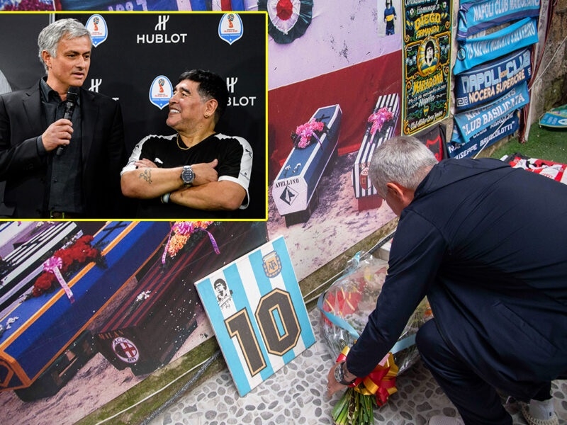 Mourinho apareció en Nápoles para visitar un rincón de la ciudad que está dedicado a Maradona, quien falleció el 24 de noviembre de 2020, a través de retratos, banderas y memorabilia, según el video publicado por la cuenta oficial del club romano en Twitter.
