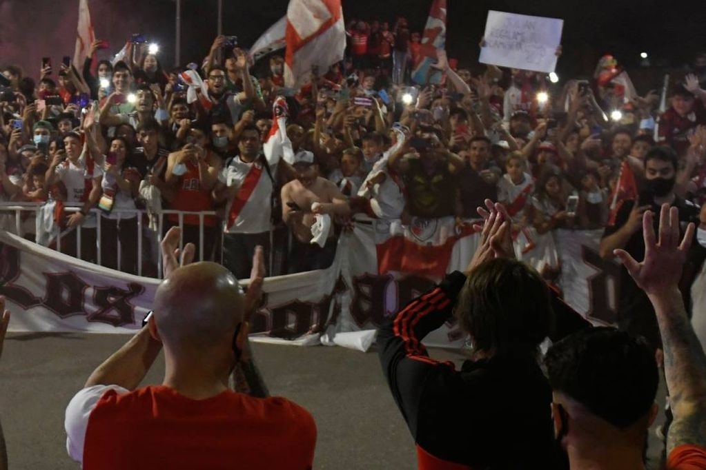 Una multitud de fanáticos del Millonario fue al hotel para recibir a los jugadores, quienes se acercaron para agradecer el gesto. Los hinchas de River coparán el Mario Alberto Kempes: agotaron las 10.500 entradas que tenían a disposición.