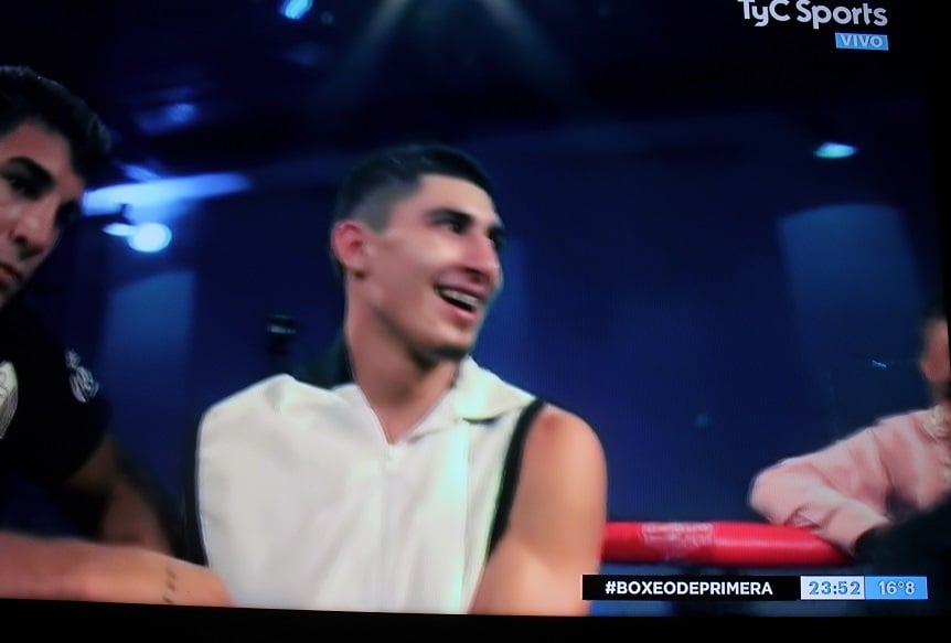 La pelea, encuadrada en la divisional Pluma (hasta 57,152 Kg.), a seis asaltos, fue el semifondo de la velada que trasmitió TyC Sports, en su ciclo Boxeo de Primera.