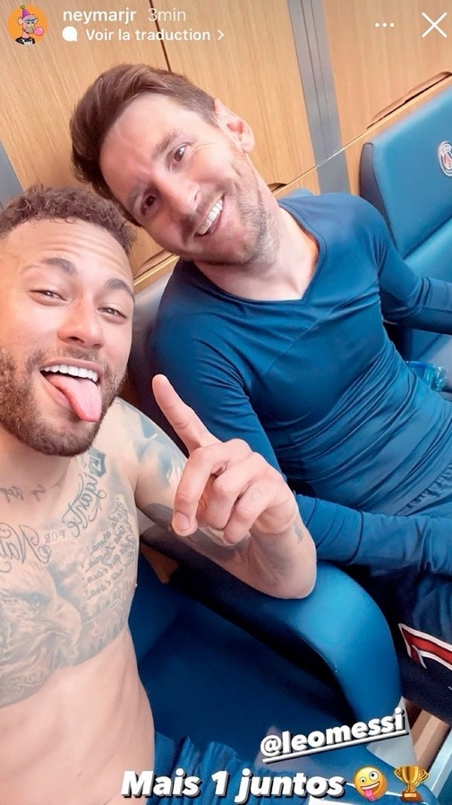 "Un trofeo más juntos", fue la frase que Neymar Jr eligió al viralizar una foto con Lionel Messi en el vestuario del Parque de los Príncipes en la consagración como campeones galos del torneo de Primera División, tras empatar 1 a 1 ante el Lens.