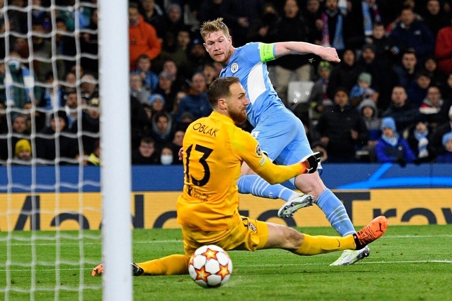 Un gol del belga Kevin De Bruyne a los 25 minutos del segundo tiempo resolvió a favor del City un trámite complicado por el esquema hiperdefensivo que presentó Atlético, en el que los argentinos Rodrigo De Paul y Angel Correa ingresaron en la etapa complementaria.