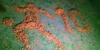 Con sólo un escobillón y las hojas secas de un árbol, el artista logró dibujar la silueta del Diez en la final del Mundial 1986 entre Argentina y Alemania. La imagen es una de las más famosas del astro futbolístico y es parte de banderas, calcomanías, tatuajes y hasta camisetas.