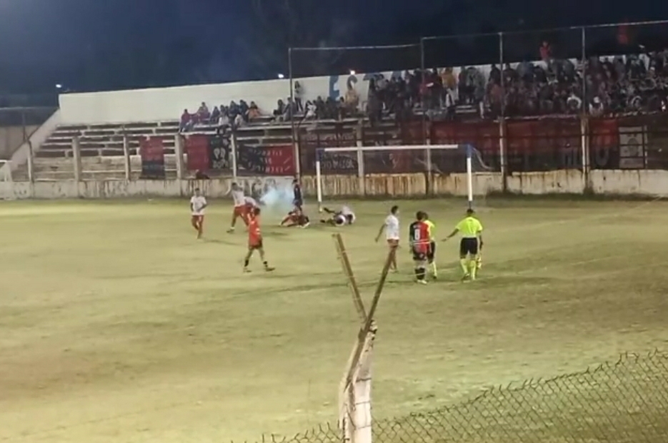 La misma, fue por la irresponsabilidad de la parcialidad del "Sagrado", quienes arrojaron bombas de estruendo al campo de juego y terminó perjudicando a un total de cuatro jugadores del "Rojo". La decisión, del referí fue inmediata.