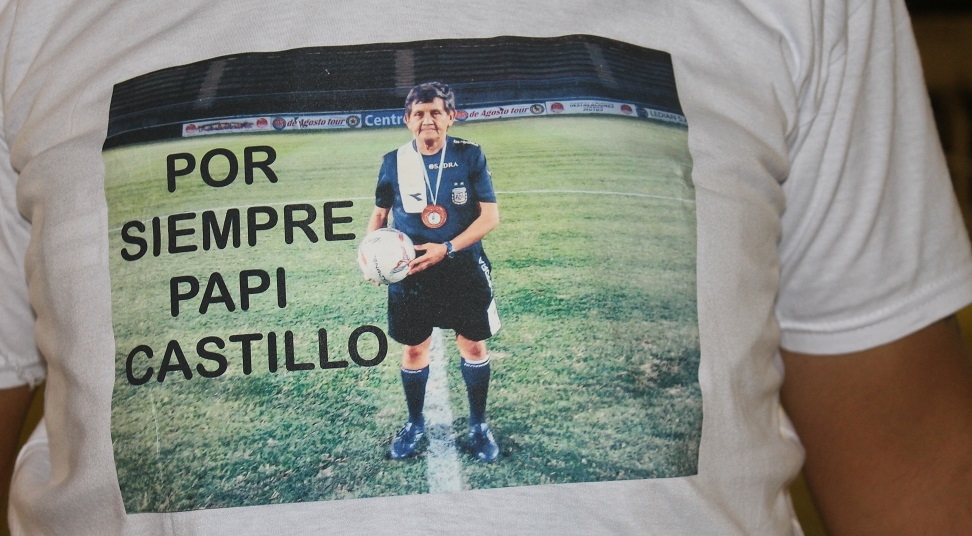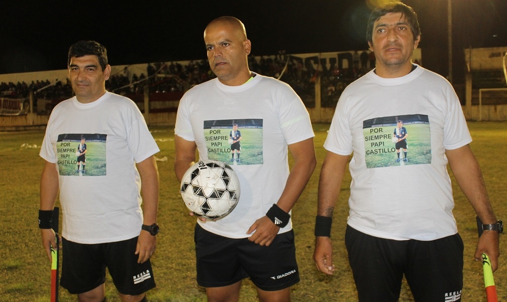 “Por siempre Papi Catillo”, se leía en las casacas de los jueces, ilustrada con una foto del muy apreciado referí, en ocasión de dirigir un partido oficial en el estadio Provincial Bicentenario de la capital catamarqueña.