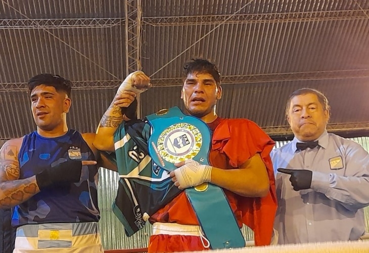 El tinogasteño radicado en La Rioja, Maximiliano Madrigal (87,350 kg) pudo retener la corona que obtuvo en abril en Chilecito (ante el local Alexander Gaetán), ya que ganó sin atenuantes, ante el retador, Jorge Vilta (89.450).