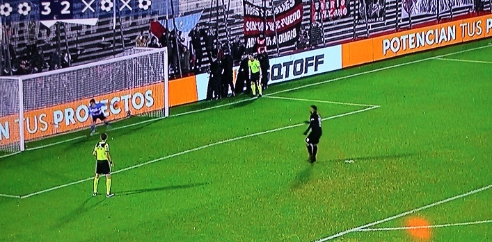 Tras un centro enviado desde la derecha por Eric Meza, Juan Guasone impactó la pelota con su mano dentro del área y el árbitro Pablo Dóvalo cobró penal para Colón. Luis Miguel ‘Pulga’ Rodríguez se hizo cargo de la ejecución y cruzó su remate de derecha, pero el arquero Facundo Altamirano lo contuvo de manera espectacular. Se fueron al descanso 0-0.