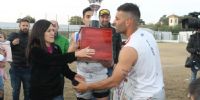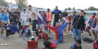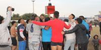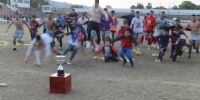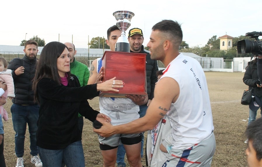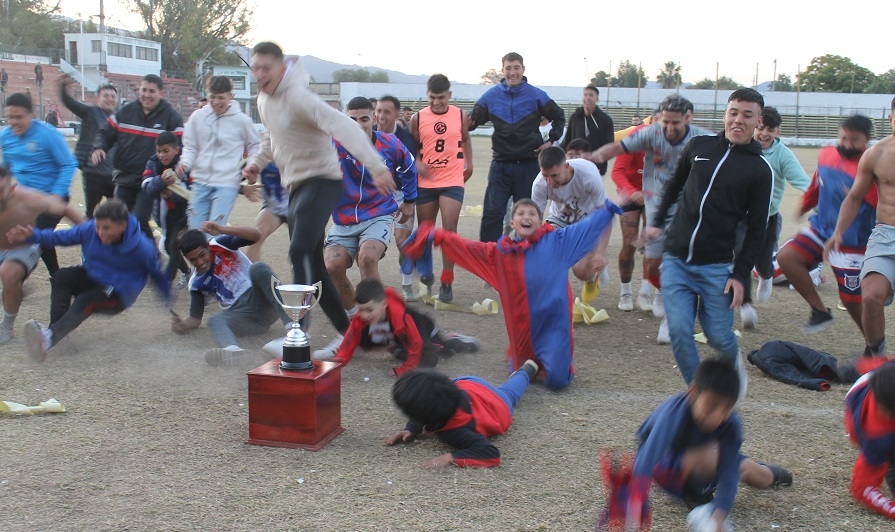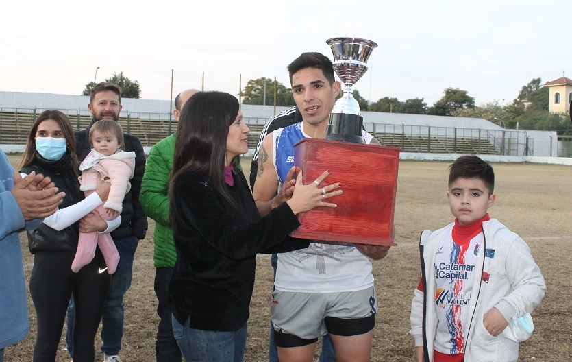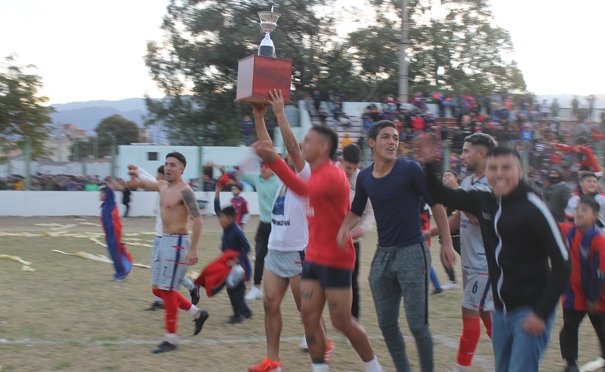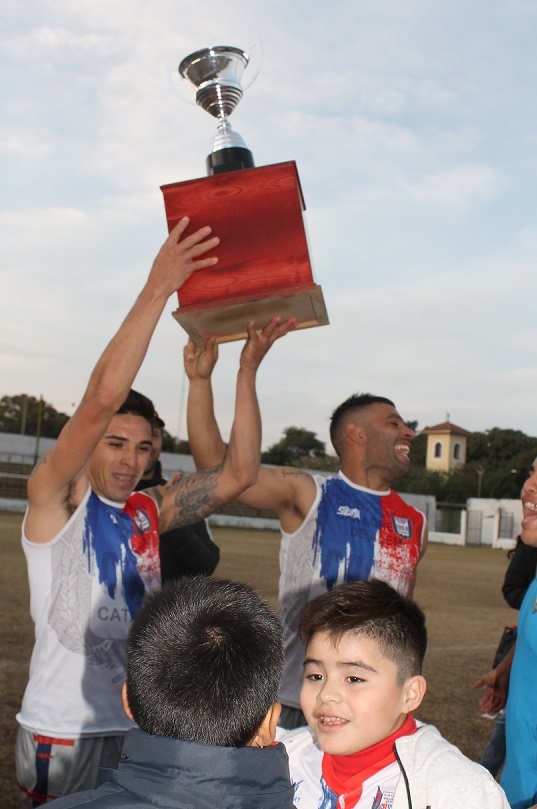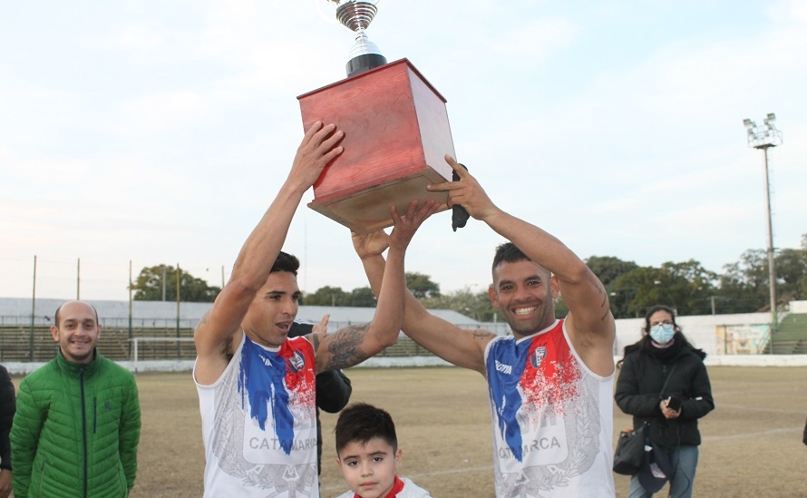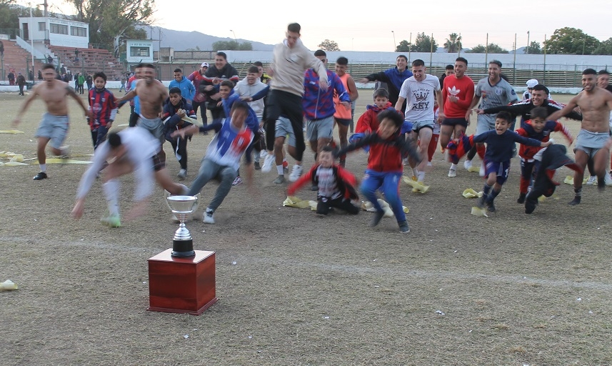 Concluido el partido de esta tarde, la presidenta de la Liga Catamarqueña, María Sylvia Giménez, entregó el trofeo “Catamarca, tu Capital” al capitán y subcapitán “azulgranas”, Alexis Rojas y Gonzalo Gómez, respectivamente, desatando la celebración de los jugadores, cuerpo técnico y dirigentes, además del centenar de hinchas que saltaron la alambrada para sumarse al festejo y, de paso, lograr algún “trofeo” personal, después de despojar, literalmente, de sus ropas a sus propios jugadores, que en algunos casos quedaron apenas en calzoncillos.