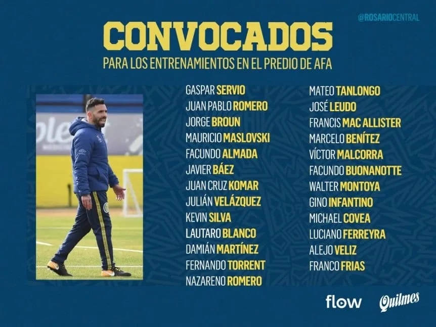 Este lunes, luego de su debut con derrota ante Gimnasia por 1-0 en el Gigante de Arroyito correspondiente a la quinta fecha de la Liga Profesional, Carlitos dio la lista de convocados para realizar las tareas en Buenos Aires, donde incluyó a los tres refuerzos de la entidad rosarina: Francis Mac Allister, Ignacio Malcorra y José Leudo. Habrá doble turno de entrenamientos para poner en buena forma física a los jugadores y además conocer mejor a sus dirigidos. Durará hasta el domingo, previo al duelo ante Aldosivi del lunes a las 19.00 en Mar del Plata.