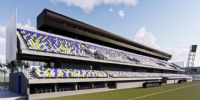 El diseño estuvo a cargo del joven arquitecto Federico Ríos, quien desarrolló el proyecto que incluye tribunas para 20 mil personas, estacionamientos, cancha auxiliar de fútbol, de hockey, de básquet y un centro polideportivo para diversas disciplinas, todo ello con el marco de un armónico plan de parquizado y forestación perimetral.