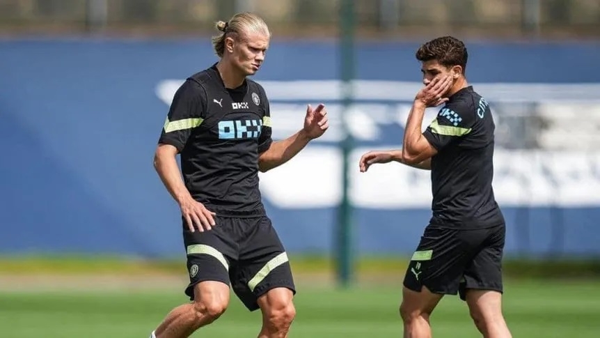 La foto de Haaland con Julián Álvarez en el entrenamiento del Manchester City
