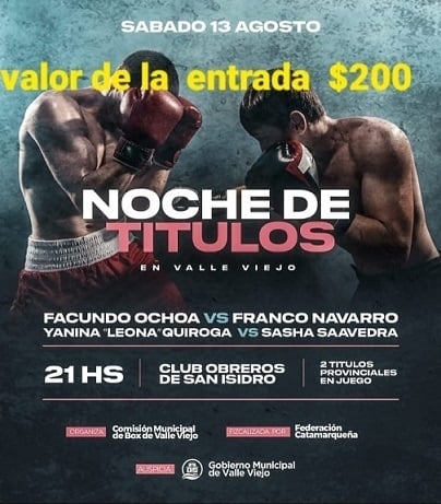 Con la organización de la Comisión Municipal de Box de Valle Viejo y la fiscalización de la Federación Catamarqueña de Boxeo, la velada contará con once combates amateurs