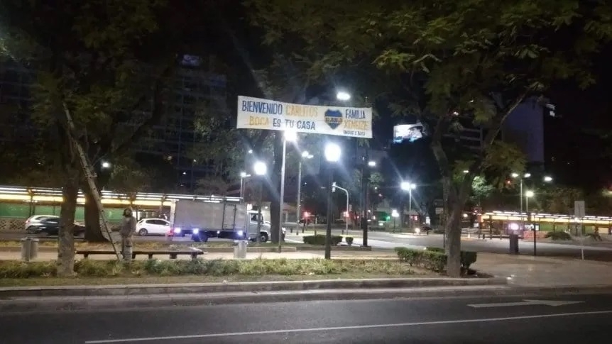 "Bienvenido Carlitos, Boca es tu casa", rezan las pintadas y los pasacalles que puso la agrupación Familia Xeneize, que también dejó mensajes de agradecimientos para el Apache. Las adyacencias de La Bombonera, la Avenida 9 de julio, las subidas a la autopista en San Juan y 9 de julio y hasta el Obelisco fueron los puntos de la Ciudad elegidos para visibilizar los mensajes y asegurarse que Tevez empiece a sentir el calor de los hinchas de Boca desde antes de llegar al estadio.