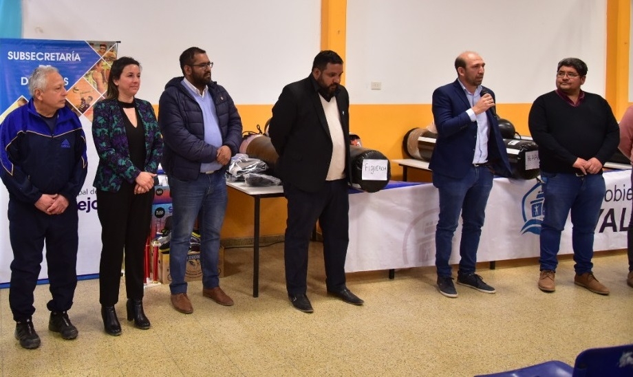 El secretario de Deportes y Recreación, del Ministerio de Turismo, Cultura y Deporte, Daniel Lavatelli, hizo entrega de elementos deportivos a la intendenta de Valle Viejo, Susana Zenteno.
