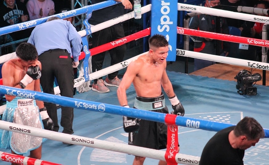 La transmisión de TyC Sports tuvo un inicio de lujo con el competitivo duelo que brindaron Luciano Chacón y Alexis Apaza, siendo el mendocino el que se llevó la victoria tras cuatro asaltos electrizantes. El hijo de Javier y sobrino de Pablo hizo gala de su versatilidad a la hora de atacar y defender, mostrándose cómodo tomando la iniciativa del combate y también apelando a feroces contragolpes que dejaron sentido al local en el 2do y 3er asalto. Lo que parecía una victoria tranquila y segura se complicó en el último round, tras una levantada del catamarqueño, que no fue suficiente para cambiar el resultado.