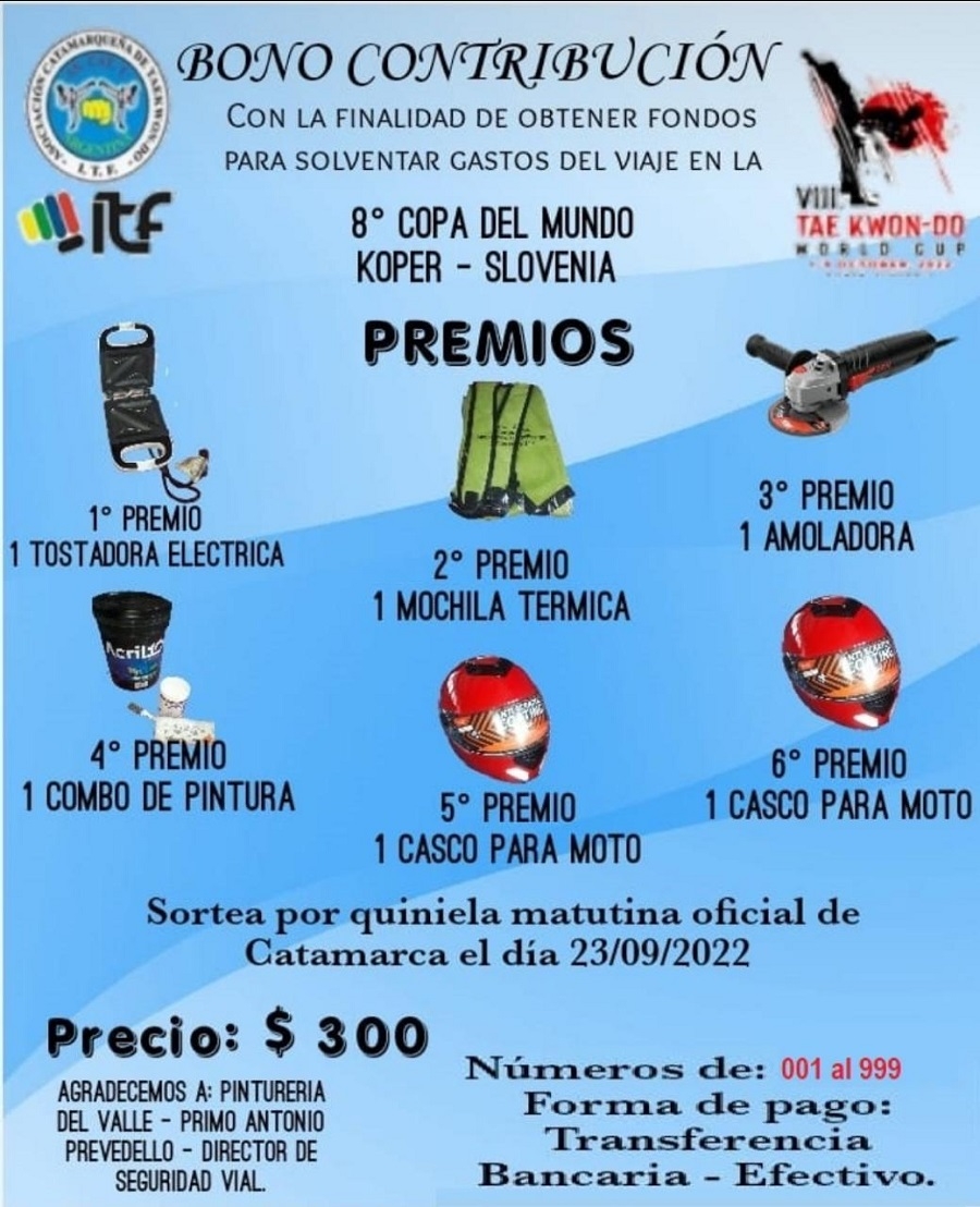Con tal motivo se ha puesto a la venta un Bono Contribución, a un costo de $300, cuyos atractivos premios son: