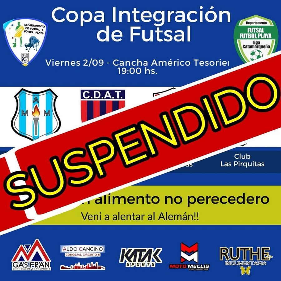 Este evento, que estaba previsto en el Club Américo Tesorieri, era de carácter amistoso y benéfico, y contemplaba que la entrada sería un alimento no perecedero. Desde la organización se anunció que, oportunamente, se dará a conocer su reprogramación.