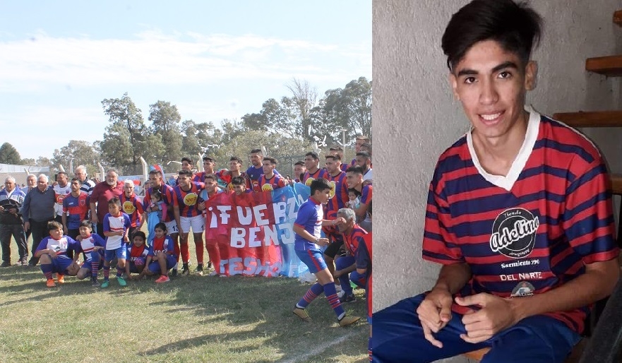 Ayer, durante la inauguración de la cancha, sus compañeros de equipo en Tesorieri, al salir a disputar su partido ante Independiente (ganó 4 a 1), posaron con una enorme bandera, que, sobre los colores azul y rojo del club, en letras blancas imploraba "¡Fuerza Benja!".