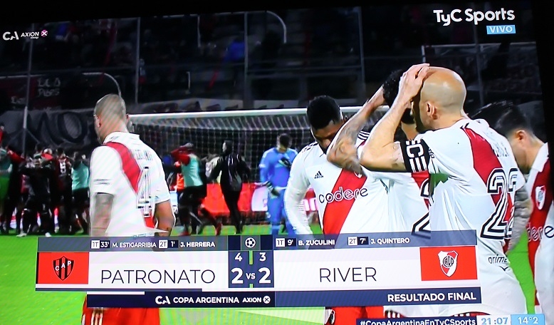 En la tanda, Juanfer Quintero, Miguel Borja y Esequiel Barco anotaron para el Millonario. Por su parte, Bruno Zuculini falló su disparo (un remate muy por encima del travesaño) y Facundo Altamirano se vistió de héroe y se lo atajó a Matías Suárez. Mientras, Leonel Mosevich, Alexander Sosa y Justo Giani convirtieron para el Patrón. Jorge Valdez Chamorro anotó el penal decisivo: fue fiesta para Patronato y otro duro golpe para River.