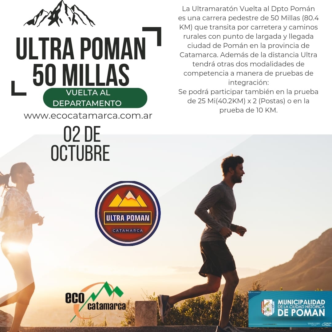 Se trata de una de las carreras más exigentes del país en formato Ultra, y cuenta con el atractivo principal de recorrer más de 8 localidades del Departamento, contando con la posibilidad de realizar la prueba en una distancia menor, realizando las 50 millas pero en dos postas de 25 millas en equipo, y una distancia corta de 10k a realizar de manera individual. Esta última tiene como punto de partida la plaza de Pomán y llega a la plaza de Colana. Mientras que el Ultra Kids (para los más pequeños) se hará de manera recreativa en la Villa de Pomán.