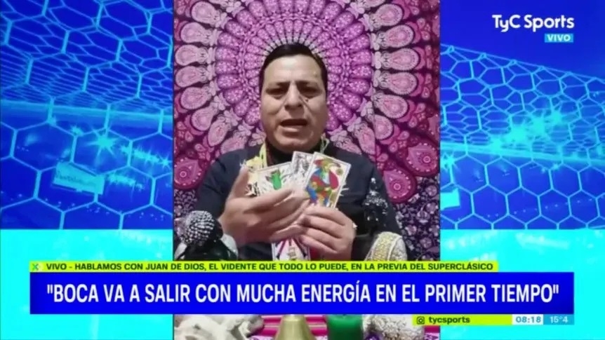 En la previa del Superclásico que tendrá lugar este domingo en La Bombonera, en el marco de la fecha 18 de la Liga Profesional, el vidente Juan de Dios pasó por la pantalla de TyC Sports y dio su veredicto sobre quién ganará. Por medio del tarot, vaticinó que River se impondrá ante Boca por una "mínima diferencia" y gracias al factor de la "suerte", contradiciendo el pronóstico que había dado horas atrás el "tarotista de Boca".