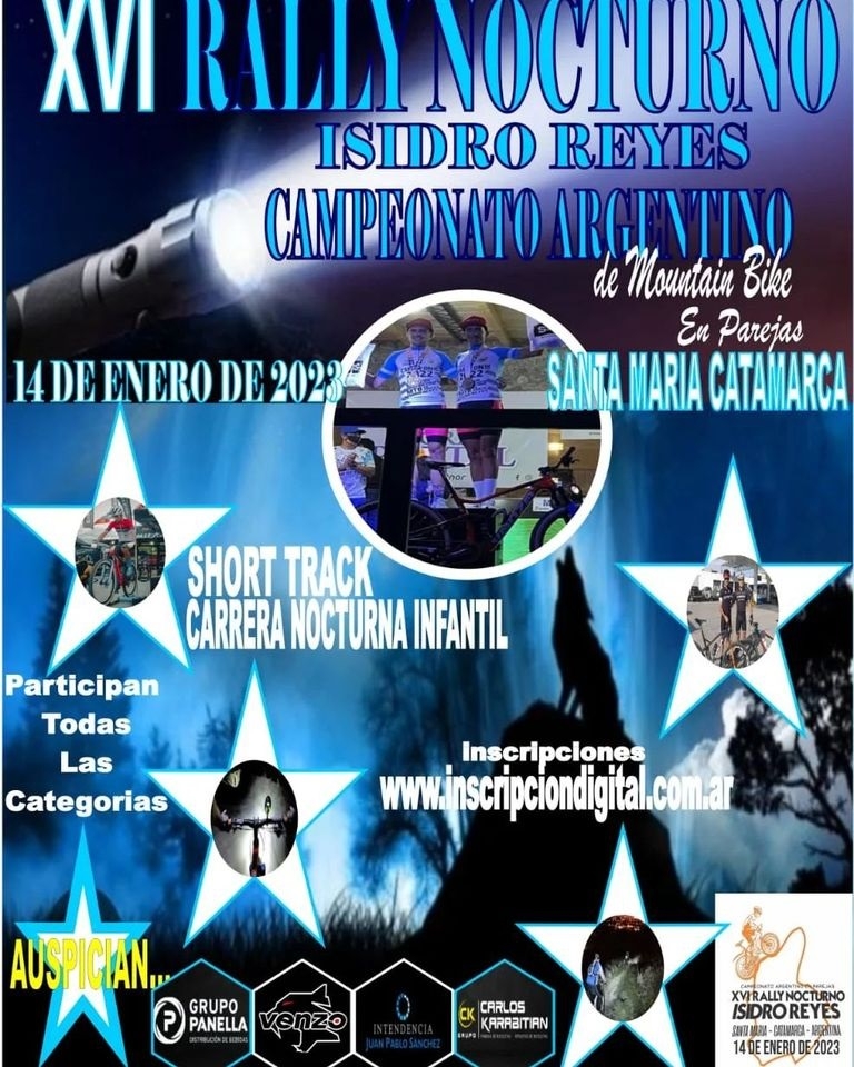 “Se viene una gran fiesta del #MTB en el país con la 16° Edición del Rally Nocturno Isidro Reyes en Santa María (Catamarca) este 14 de enero. Nuestro clásico circuito ya te espera >> https://bit.ly/CircuitoRallyNocturno2023”, remarcan.