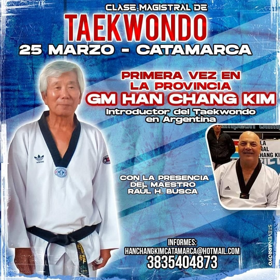 Por último, es menester destacar que el mencionado evento cuenta con el respaldo de los Maestros Raúl Busca (9º DAN y director de la Escuela Nacional Han Chang Kim) y Luis Vega Jaccod (8º DAN), entre otros, quienes también arribarán a la provincia acompañando al gran Maestro Kim durante toda su estadía. Asimismo, a nivel local el proyecto se encuentra a cargo de la filial Catamarca de la escuela en cuestión, que tiene como responsable a Moyano, quien a su vez se encuentra afiliado a la Asociación de Taekwondo WT Catamarca (ente regulador provincial) y por ende a la Confederación Argentina de Taekwondo (ente regulador nacional).