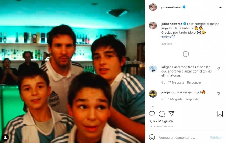 Una de las fotos que más se ha viralizado en las redes sociales en los últimos dos años acerca de la Selección Argentina es sin dudas esa de Julián Álvarez de chiquito junto a sus hermanos con Lionel Messi, donde el Araña le deseó feliz cumple "al mejor jugador de la historia", probablemente sin siquiera imaginar que unos años más tarde estaría ganando un Mundial junto a Leo y la Selección Argentina.