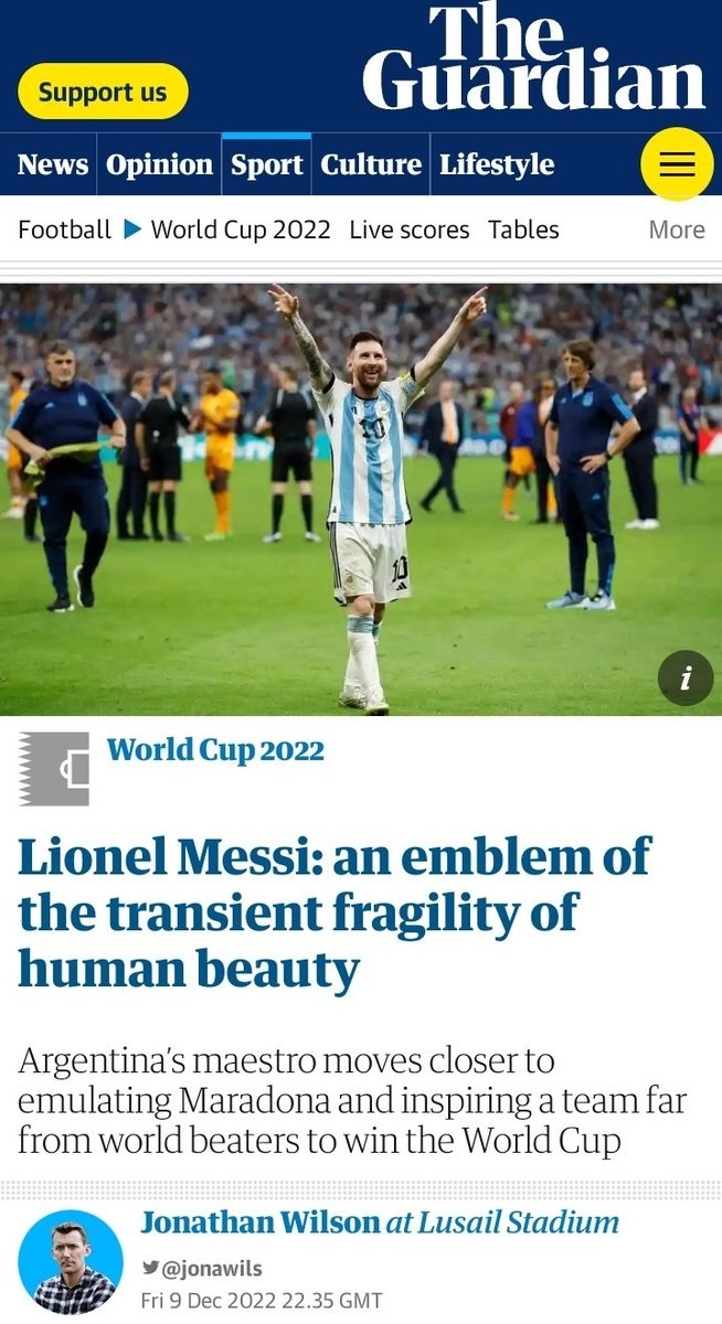 "Tras una temporada baja 2021/22, la primera en el PSG, nadie sabía qué esperar de Messi en el Mundial. Pero volvió del verano europeo escupiendo fuego. Marcó goles y dio asistencias en el campeonato francés y luego llevó a Argentina a la gloria por primera vez desde 1986", aseguró el rotativo justificando el primer lugar del rosarino.