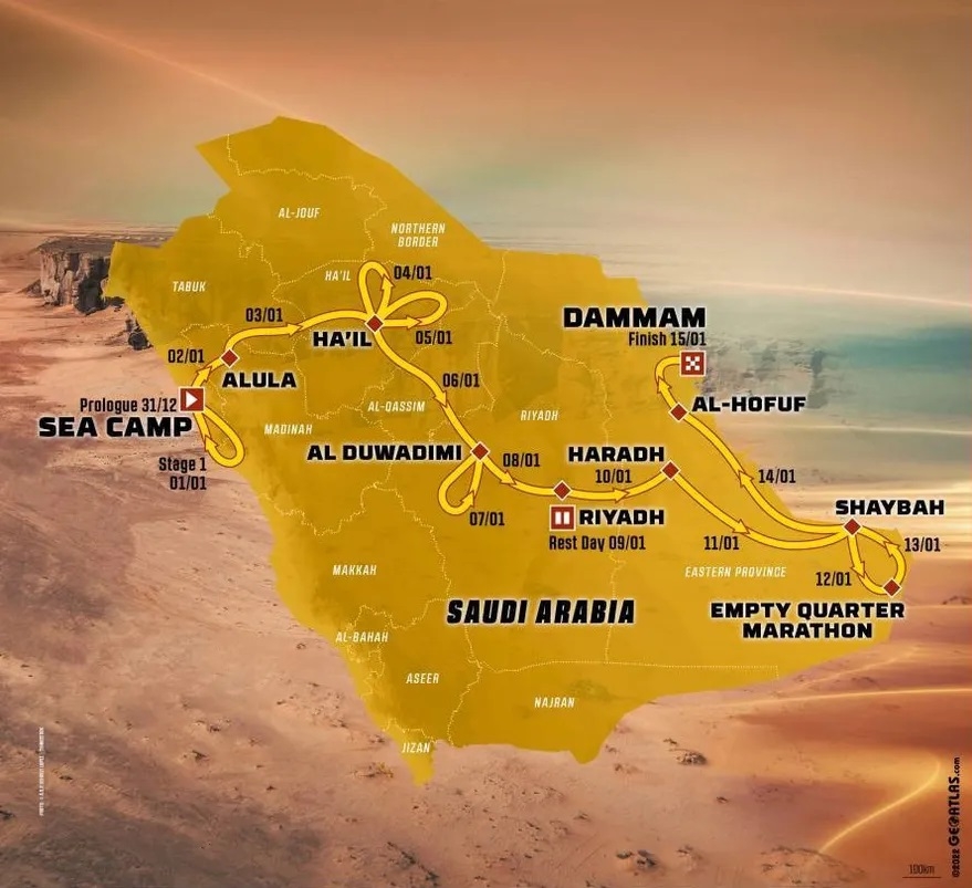 El Rally Dakar 2023 comenzó el 31 de diciembre de 2022 y concluirá el 15 de enero de 2023. Los vehículos largaron en el Mar Rojo y deben concluir 14 etapas: 8549 kilómetros hasta el Golfo Pérsico. Cruzan el desierto y hay unos 5000 kilómetros de tramos especiales. La organización definió al circuito como el “más exigente” desde que el evento se realiza en territorio saudí -2020-.