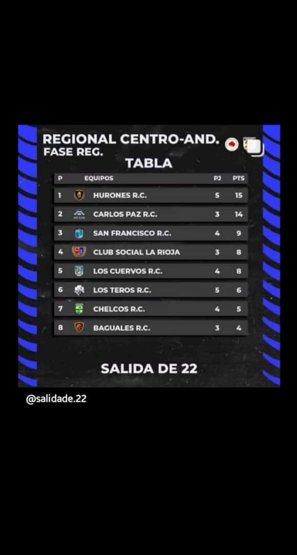 Con este triunfo, Hurones está primero, seguipo por Carlos Paz, a un punto, en el torneo Regional Centro, que disputan conjuntamente clubes de las uniones Andina y Cordobesa de rugby.