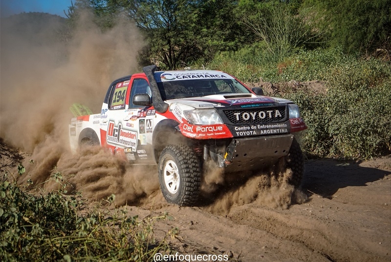 Párrafo aparte para los catamarqueños Pepe y Enrique Demelchori, que con la Hilux se encuentran en la 1ra posición dentro de su categoría T2.2 a pesar de la rotura del cardan.