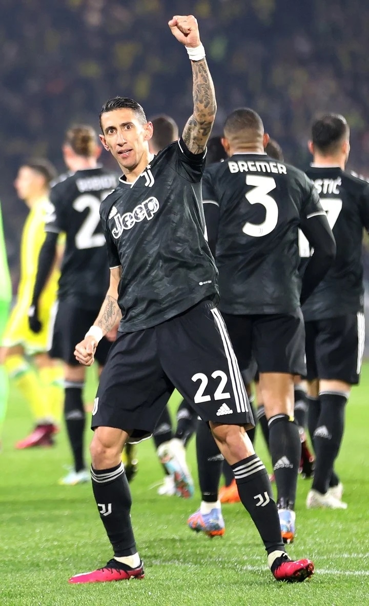 Tras el empate 1 a 1 que sellaron en Turín, la Vecchia Signora salió con una actitud agresiva en La Beaujoire-Louis-Fonteneau de Francia. Y lo hizo a través de su mejor hombre: el argentino campeón del mundo en Qatar surgido de Rosario Central. Es que la estrella internacional con pasado en el Manchester United, PSG, Benfica y Real Madrid sorprendió a los 5 minutos de iniciado el compromiso con una muestra de jerarquía que dejó sin posibilidades a Alban Lafont. Con la cara interna buscó el palo más lejano del arquero y la pelota se metió en el ángulo: una obra propia de una leyenda.