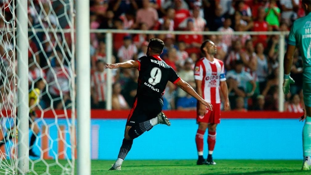Porque un pelotazo largo de Alarcón, sobre los 42m., fue capturado por Cerato por derecha. El lateral combinó con Graciani, quien fue hasta el fondo de la cancha para lanzar un centro justo a la cabeza de Martínez, que ganó en el área y dejó sin asunto al arquero uruguayo Santiago Mele.