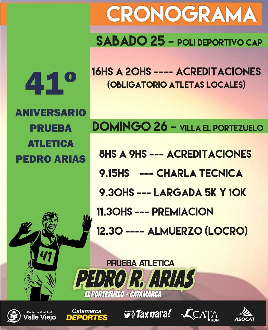 Sábado 25, de 16 a 20 Hs., en Polideportivo Capital: acreditaciones, con carácter obligatorio para atletas locales.