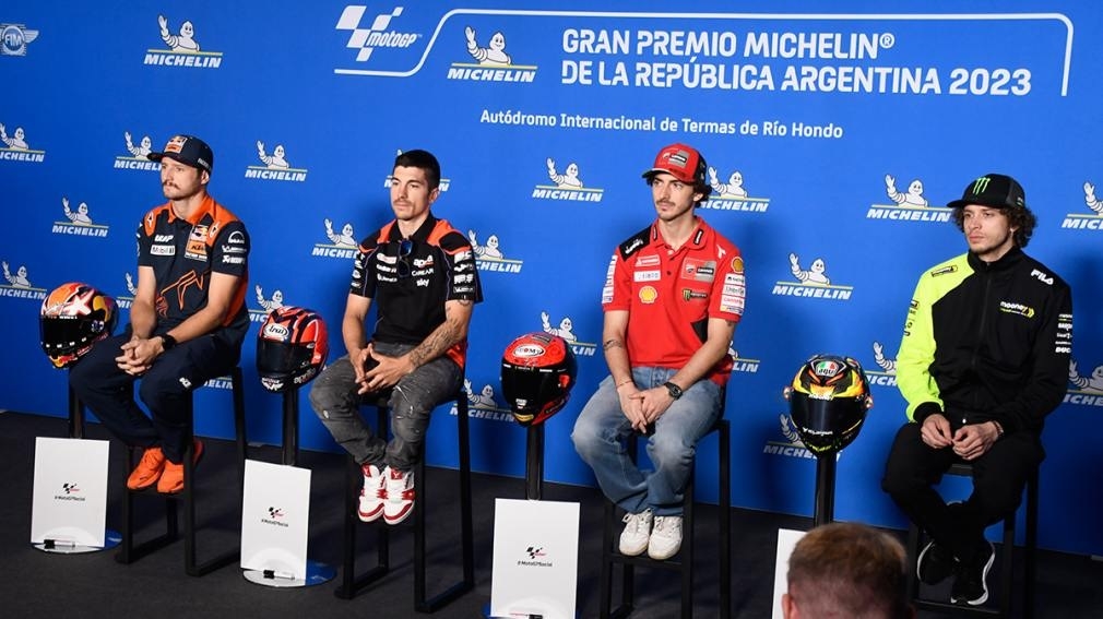 Este jueves al mediodía se produjo el primer contacto de la prensa acreditada para el evento con algunos de los pilotos que están ultimando detalles para la carrera central del domingo. En la primera conferencia estuvieron Pecco Bagnaia (Ducati), Maverick Viñales (Aprilia), Marco Bezzecchi (Ducati) y Jack Miller (KTM).