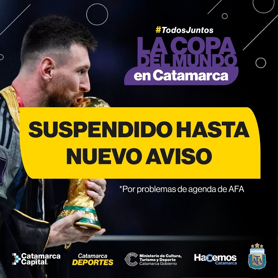 Las autoridades a cargo del evento explicaron que las entradas que se emitieron para esta ocasión serán válidas para la fecha venidera, una vez que se confirme la llegada de la Copa y el presidente de AFA, Claudio Tapia.