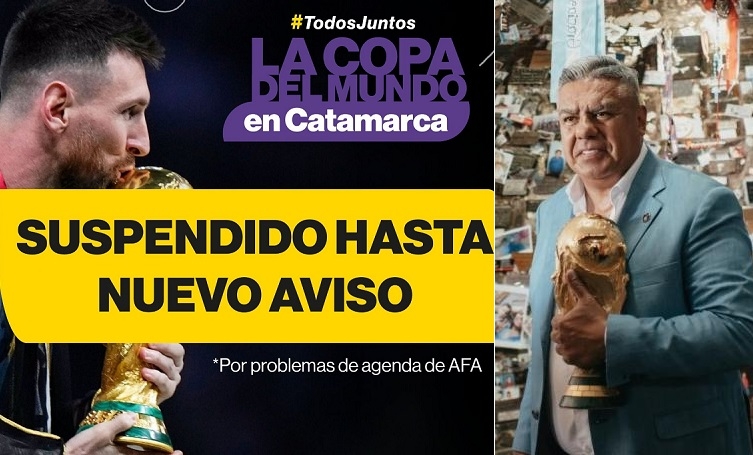 Luego la información añade que “Chiqui Tapia aterriza en nuestra provincia con la Copa del Mundo, la Copa América y el trofeo de la Finalissima bajo el brazo. La entrada será libre y gratuita”.