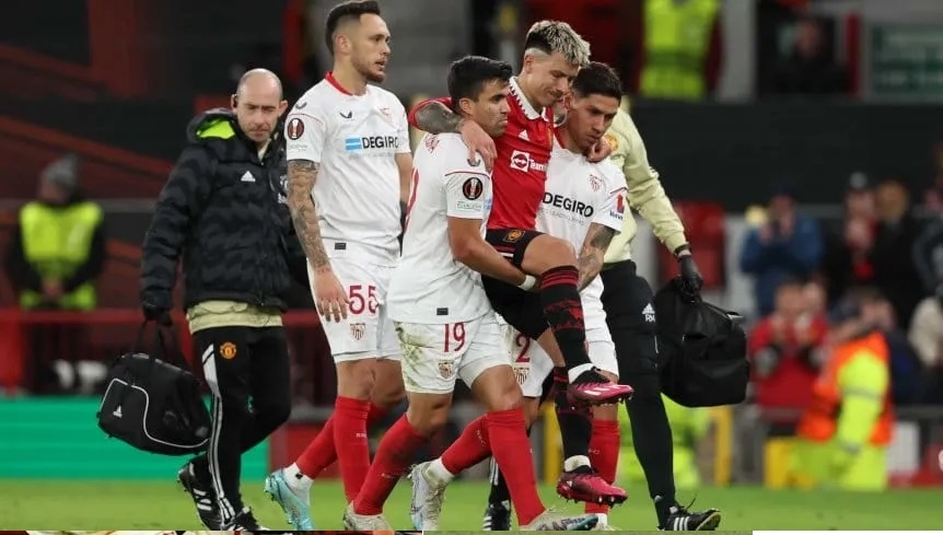 Lisandro Martínez encendió las alarmas al salir lesionado en el encuentro que Manchester United y Sevilla disputaron por los cuartos de final de la Europa League. Y sería de gravedad.