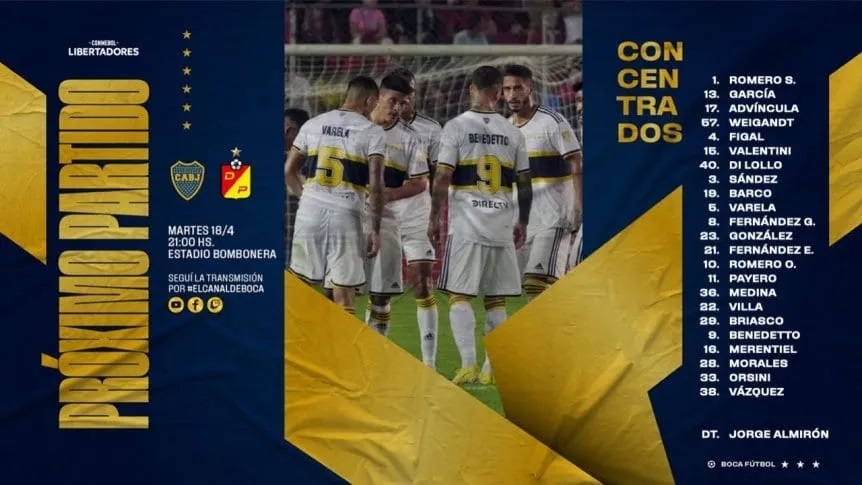 Luego de la derrota sobre la hora contra Estudiantes, Boca deberá despejar la cabeza rápidamente y enfocarse en el duelo del martes a las 21 contra Deportivo Pereira, en lo que será la segunda jornada de la fase de grupos de la Copa Libertadores. Por eso, a falta de 24 horas para el cotejo en la Bombonera, Jorge Almirón anunció a los 23 jugadores que buscarán la victoria frente al equipo colombiano. Si bien Sebastián Villa fue incluido pese a que comenzó el juicio en su contra, aún no concentró y es duda.