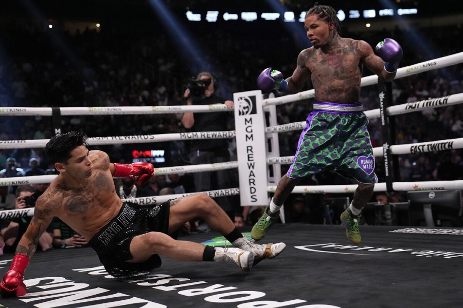 El gancho de izquierda de Gervonta Davis a Ryan García no pareció hacer mucho daño en un principio.