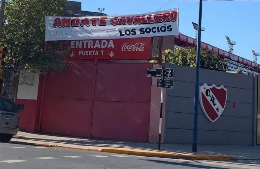 "Andate, Cavallero", reza el cartel que fue colgado en la intersección de las calles Alsina y Pastoriza, en uno de los accesos al estadio del Rojo. Esta no es la primera vez que el mánager es uno de los apuntados por los simpatizantes.