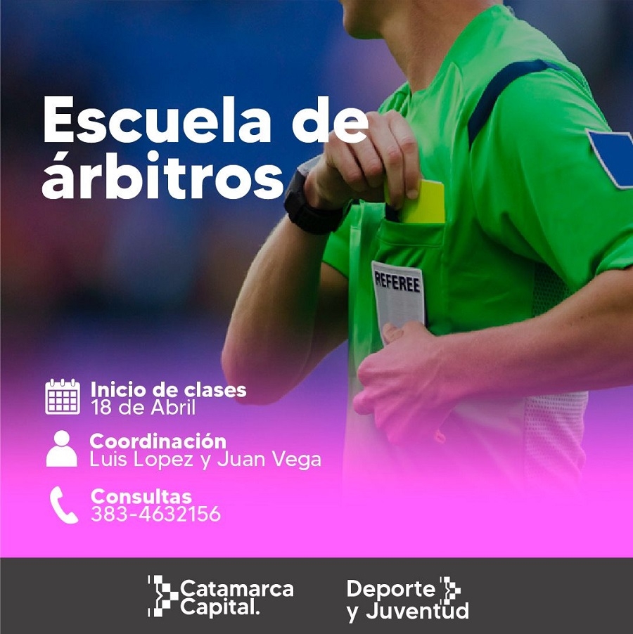La Subsecretaría de Deportes y de la Juventud de la Municipalidad de San Fernando del Valle de Catamarca, anunció el inicio del ciclo 2023 de su Escuela de Árbitros, para el martes 18 de abril venidero.