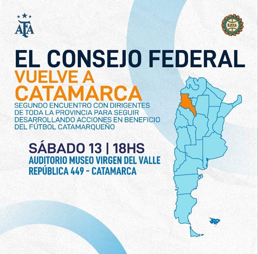 En la oportunidad, las autoridades realizarán entrega de computadoras a las 10 ligas y a la federación Catamarqueña de Fútbol, cumpliendo con el pedido realizado en el encuentro anterior y además, se anunciará un cronograma de capacitaciones sobre sistema Comet, tribunal de disciplina, futbol femenino y arbitraje.