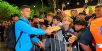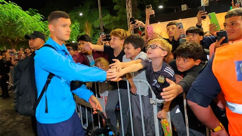 Los jugadores y el DT se acercaron a los cientos de fanáticos santiagueños que se acercaron a darle la bienvenida a la Selección.