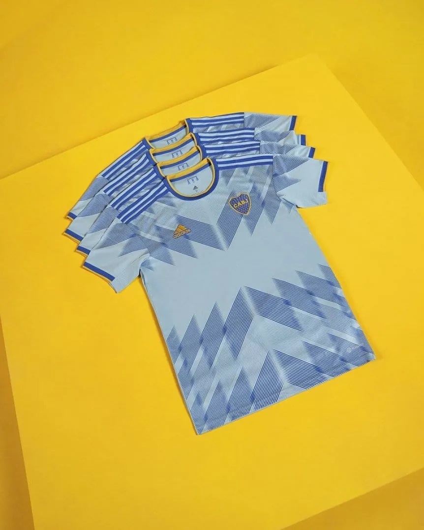 Boca presentó esta mañana su flamante camiseta alternativa. La remera tiene como color principal el celeste y cuenta con algunos detalles en un tono de azul más oscuro, como se aprecia en el borde de las mangas, por ejemplo. Además, tiene el cuello redondo y una especie de “V” formada con rayas sobre el pecho y la parte inferior.