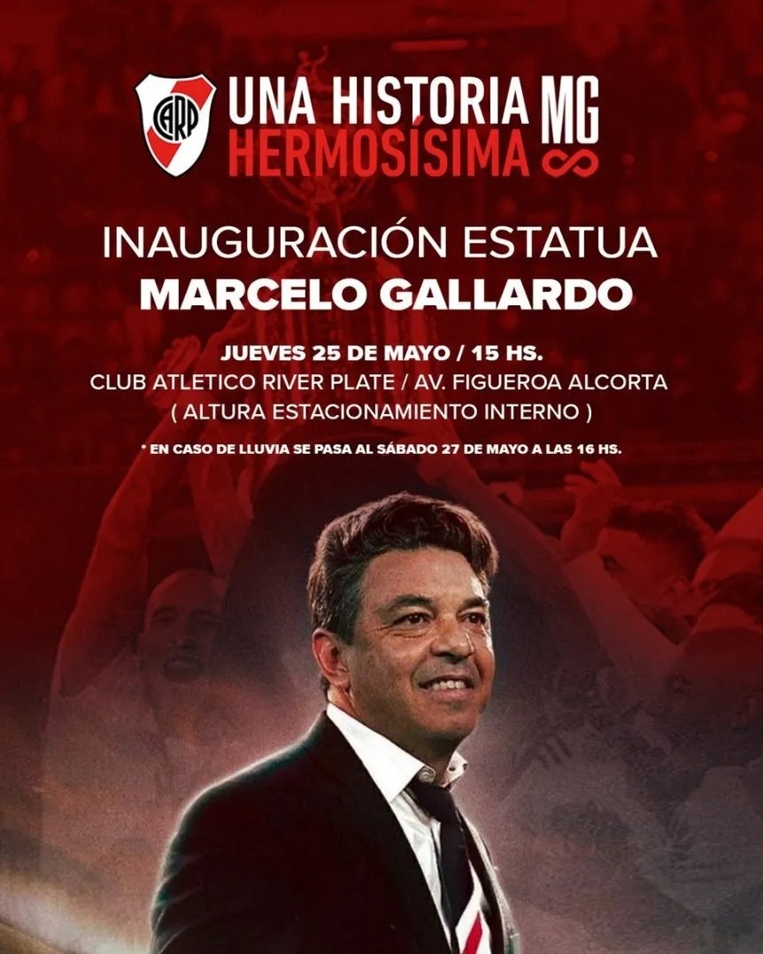 "Durante el evento se recordará el paso de Gallardo como jugador de la Institución y su etapa como director técnico, en la cual el club consiguió la histórica Copa Libertadores en 2018 en la final disputada en el Santiago Bernabéu de Madrid", detalló River.