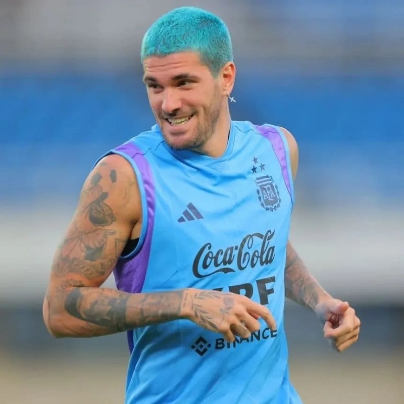 Rodrigo De Paul estrenó un llamativo look en la gira de la Selección Argentina: el mediocampista del Atlético de Madrid se tiñó el pelo de color celeste, en la previa a los amistosos del conjunto nacional en esta fecha FIFA.